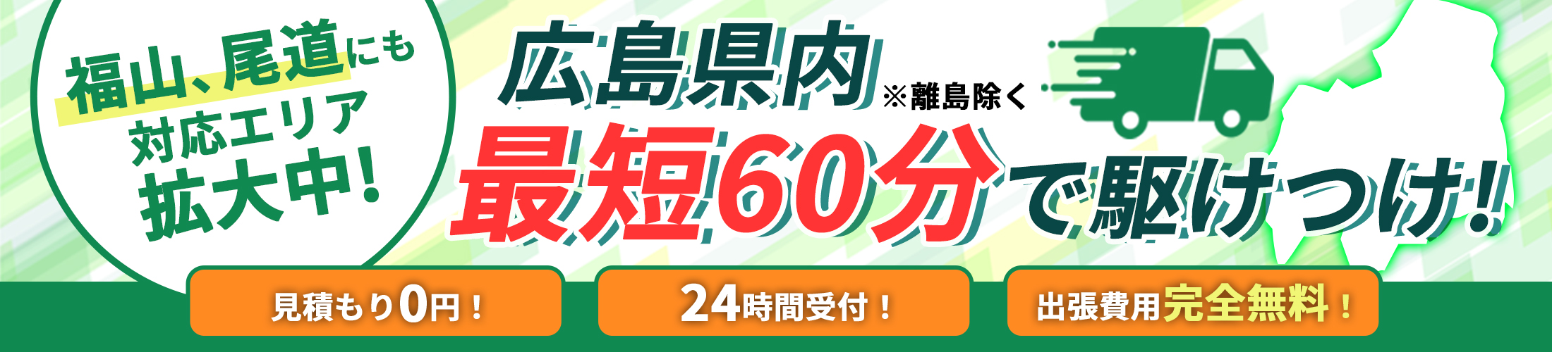 お電話1本で広島県内どこへでも出張費無料でお伺いいたします。まずはお気軽にご連絡下さい!